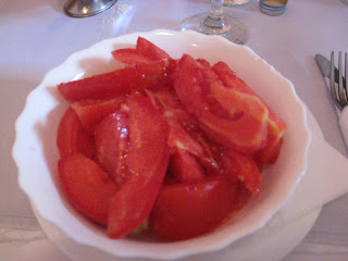 The food arrived - the risotto was a bit tasteless, but this was more than compensated for by the half a kilo of salt that had been added to the giant bowl of tomatoes that accompanied it. The whitebait was more successful.