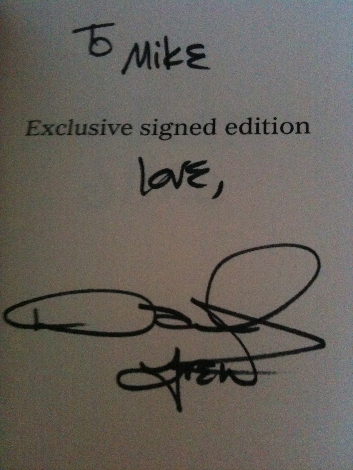 I am a big Sue Perkins fan so was very excited at the prospect of meeting her at the signing. Alas it was not to be, the conversation on stage was over an hour long and brilliantly funny, but only Dawn attended the signing part (well it was to promote her book Oh Dear Silvia I guess).